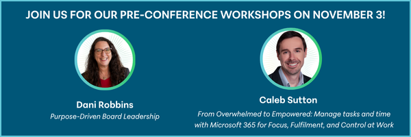 The event begins the afternoon of November 3rd with pre-conference workshops on leadership and governance, followed by the opening reception — a great way to connect!